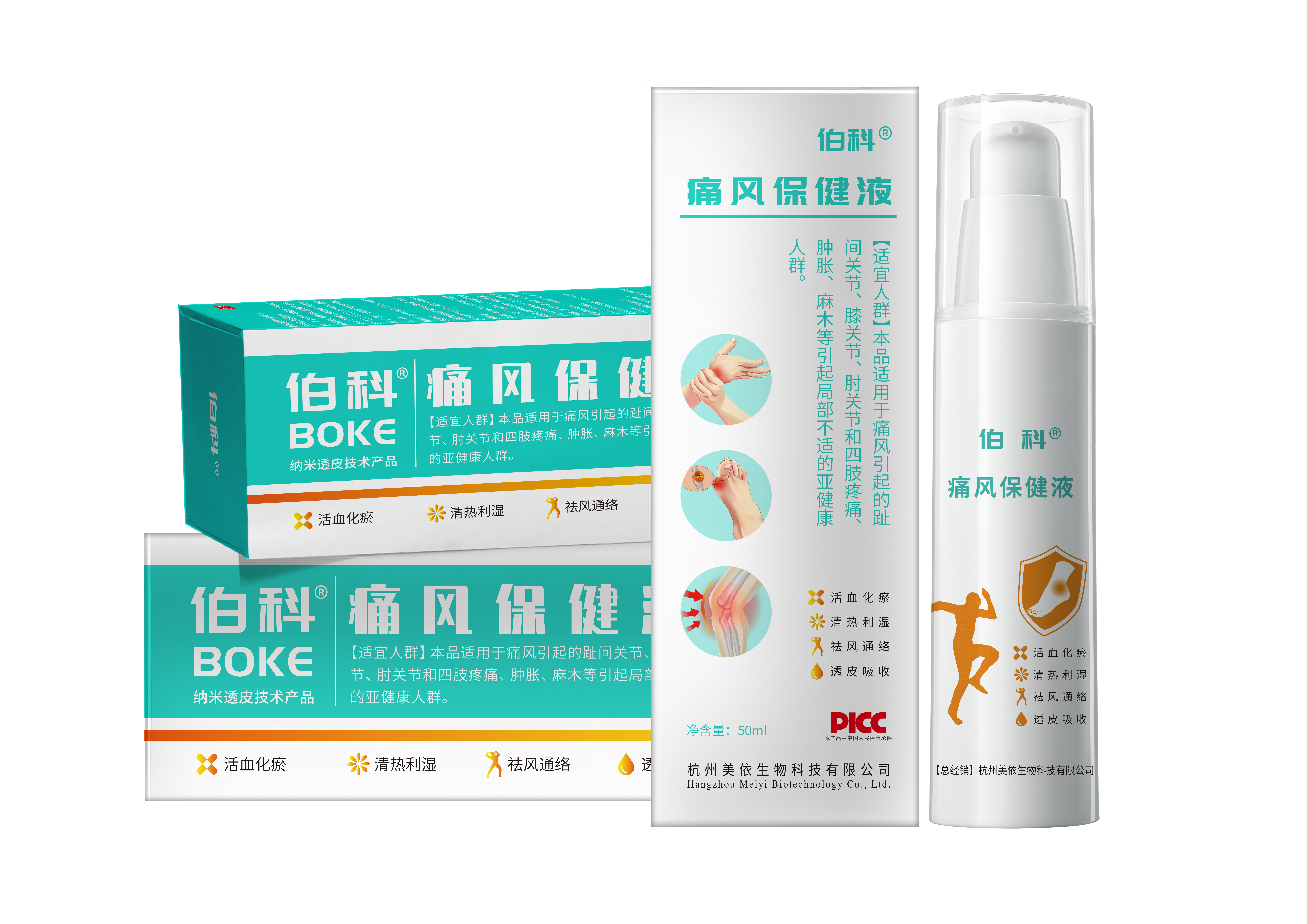 采用國際發(fā)明專利技術(shù)開發(fā)上市的 伯科®痛風(fēng)保健液產(chǎn)品實物圖