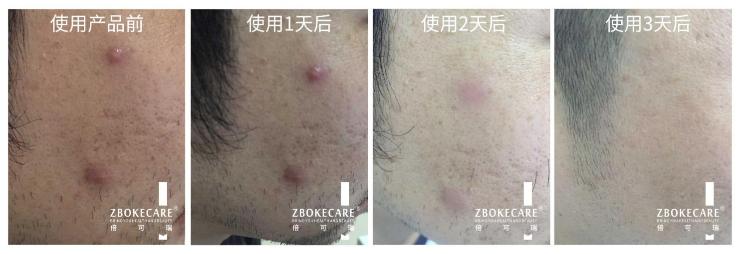 使用后狀態(tài):使用3天后,痘痘紅腫消退,不留痘印痘痕,完美修復