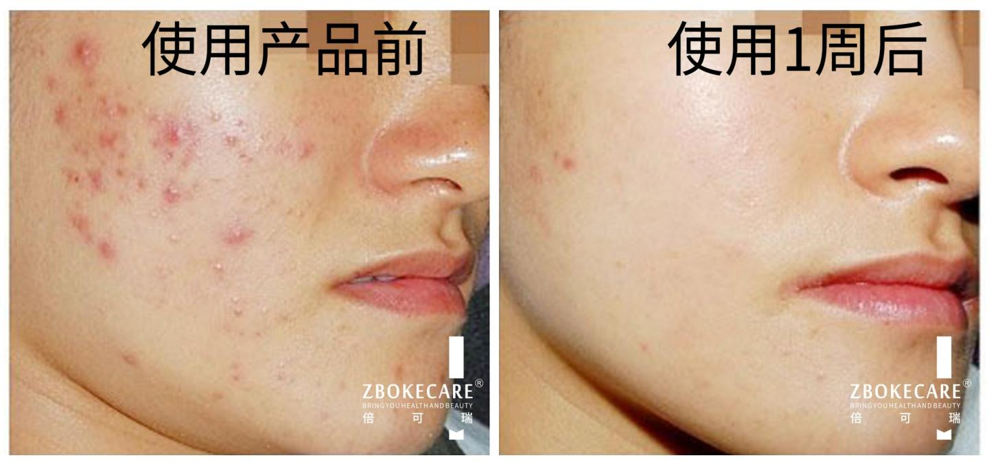 使用后狀態(tài):使用1周后,痘痘消退,痘印痕跡消除,皮膚變光滑、細膩,痘痘不再反復生長