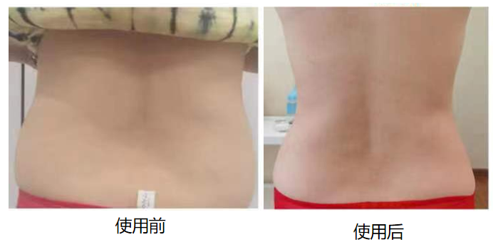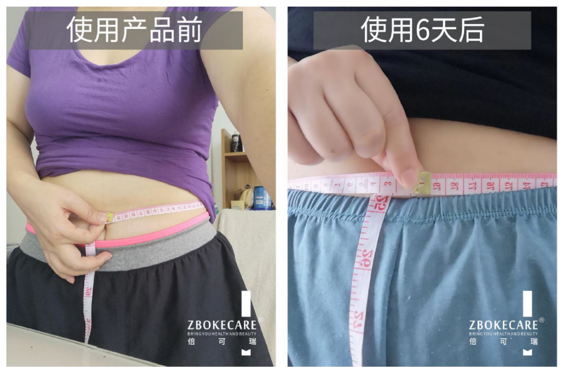 使用后:使用產(chǎn)品6天后,腹部皮膚變緊實(shí)、收緊,腰圍測(cè)量79公分,塑形5公分。