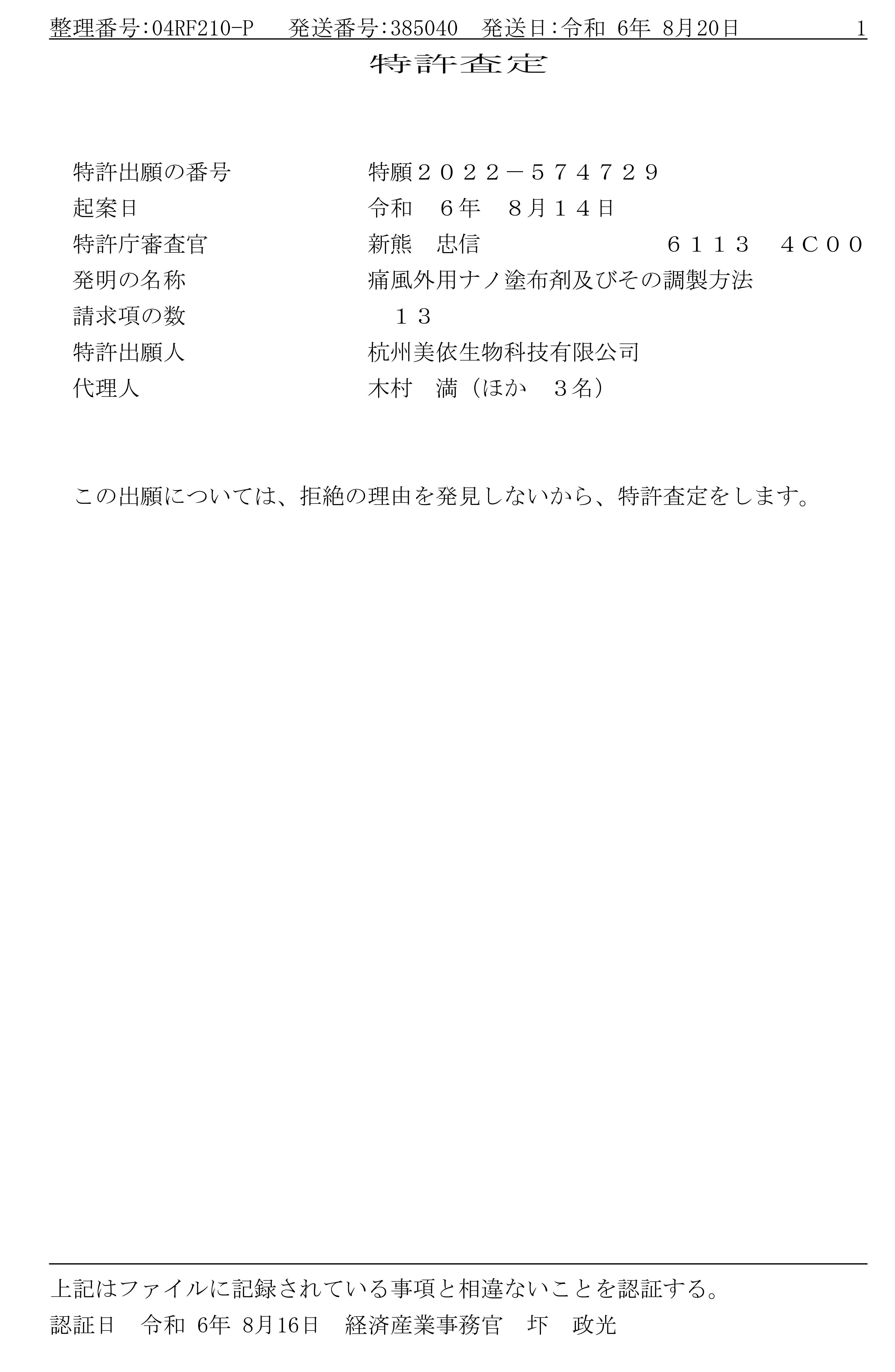 今日,杭州美依生物科技有限公司正式收到日本國(guó)家專利局頒發(fā)的PCT國(guó)際發(fā)明專利審查通知