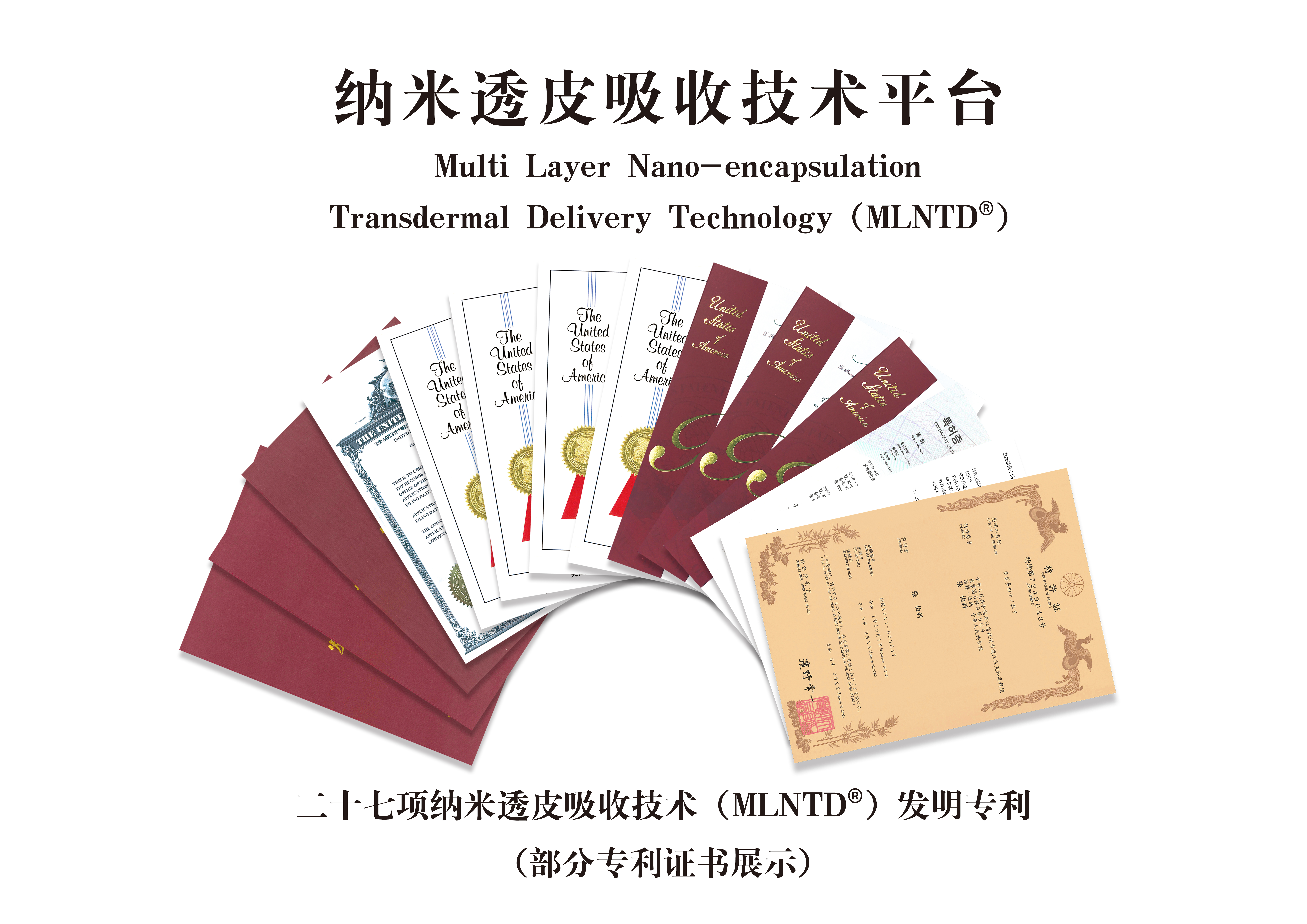 如今,納米透皮吸收技術(shù)(MLNTD®)在中美日韓等國家和地區(qū)共計獲得27項國際發(fā)明專利證書,該項技術(shù)已成功應(yīng)用于保健用品、護膚品、醫(yī)療器械等多個產(chǎn)品領(lǐng)域,形成了獨家專有技術(shù)的知識產(chǎn)權(quán)“護城墻”,實現(xiàn)了大健康領(lǐng)域跨越式發(fā)展。