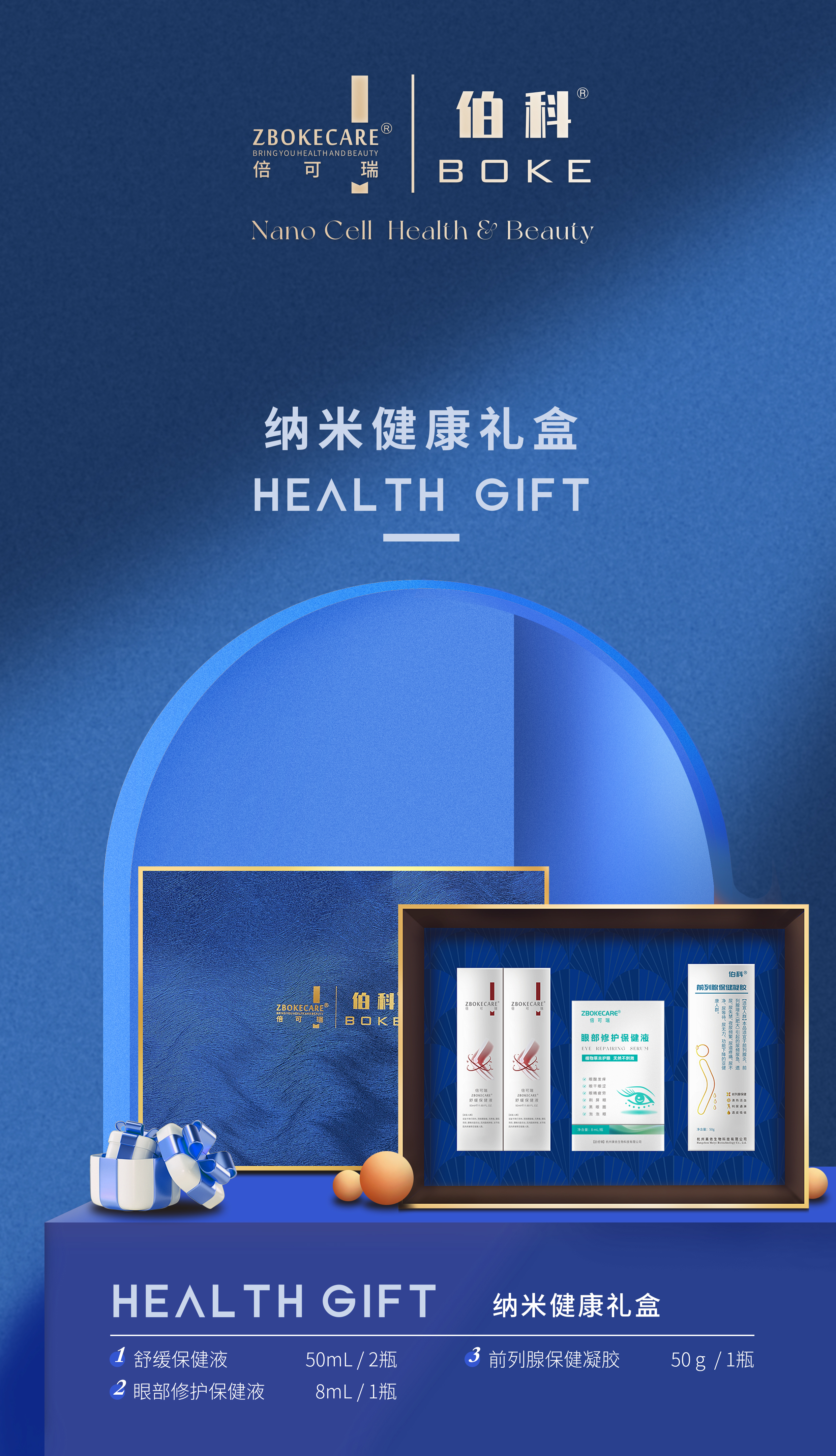 納米健康禮盒內(nèi)含2瓶舒緩保健液,1瓶眼部修護(hù)保健液,1瓶前列腺保健凝膠,納米透皮新型產(chǎn)品,從骨關(guān)節(jié)、護(hù)眼、男性健康三大方面,全方位塑造強(qiáng)健體魄,重現(xiàn)青春活力。